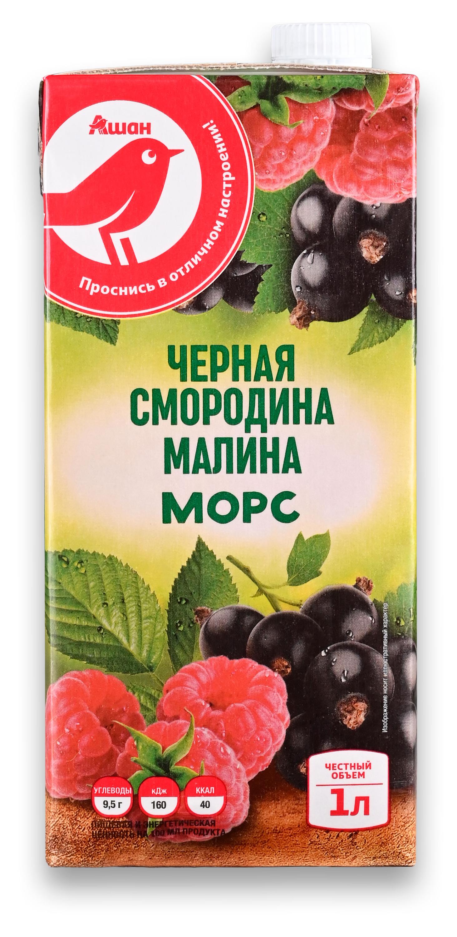 Морс АШАН Красная птица черная смородина-малина, 1 л