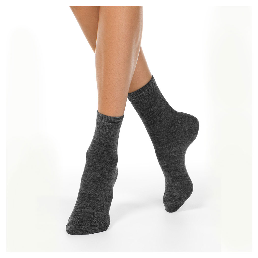 Носки женские, средней длины, гладкие, двойной борт, тонкая полушерсть