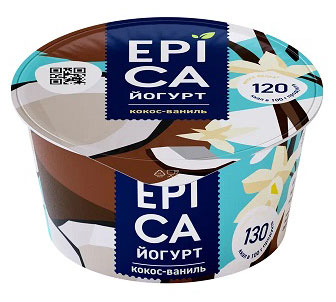 Йогурт EPICA фруктовый с кокосом и ванилью 6.3%, 130 г
