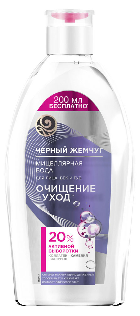 Мицеллярная вода для снятия макияжа бренда Черный Жемчуг полностью удаляет макияж с лица и век без раздражения и дискомфорта, обеспечивая комфорт слизистой глаз. Уникальный дозатор обеспечивает максимальную легкость использования средства для снятия макияжа - всего 1 клик, и ты готова снимать макияж! Теперь не нужно переворачивать флакон, чтобы смочить ватный диск, просто положите его на дозатор и нажмите несколько раз. А большой объем средства обеспечит нескончаемое удовольствие. В составе мицеллярной воды содержится 20% активной сыворотки с жидким коллагеном, камелией и гиалуроном, благодаря которой мицеллярная вода для лица не просто очищает кожу и снимает макияж одним движением, а ухаживает за кожей уже на этапе очищения: увлажняет, питает и повышает упругость кожи. Умные мицеллы помогают бережно удалить макияж и загрязнения с кожи, а содержащиеся в составе жидкий коллаген, камелия и гиалурон делают кожу более гладкой и бархатистой без ощущения сухости. В результате уход за кожей становится эффективнее! Мицеллярная вода для лица Черный Жемчуг одобрена офтальмологами и дерматологами. Рекомендована для салонов красоты и профессионального применения. Для красоты вашей кожи без сухости, обязательно очищайте ее 2 раза в день. Утром используйте гель для умывания для сухой и чувствительной кожи для очищения без пересушивания, а вечером – мицеллярную воду для снятия макияжа. Всего 2 средства для здоровья и красоты вашей кожи без сухости!