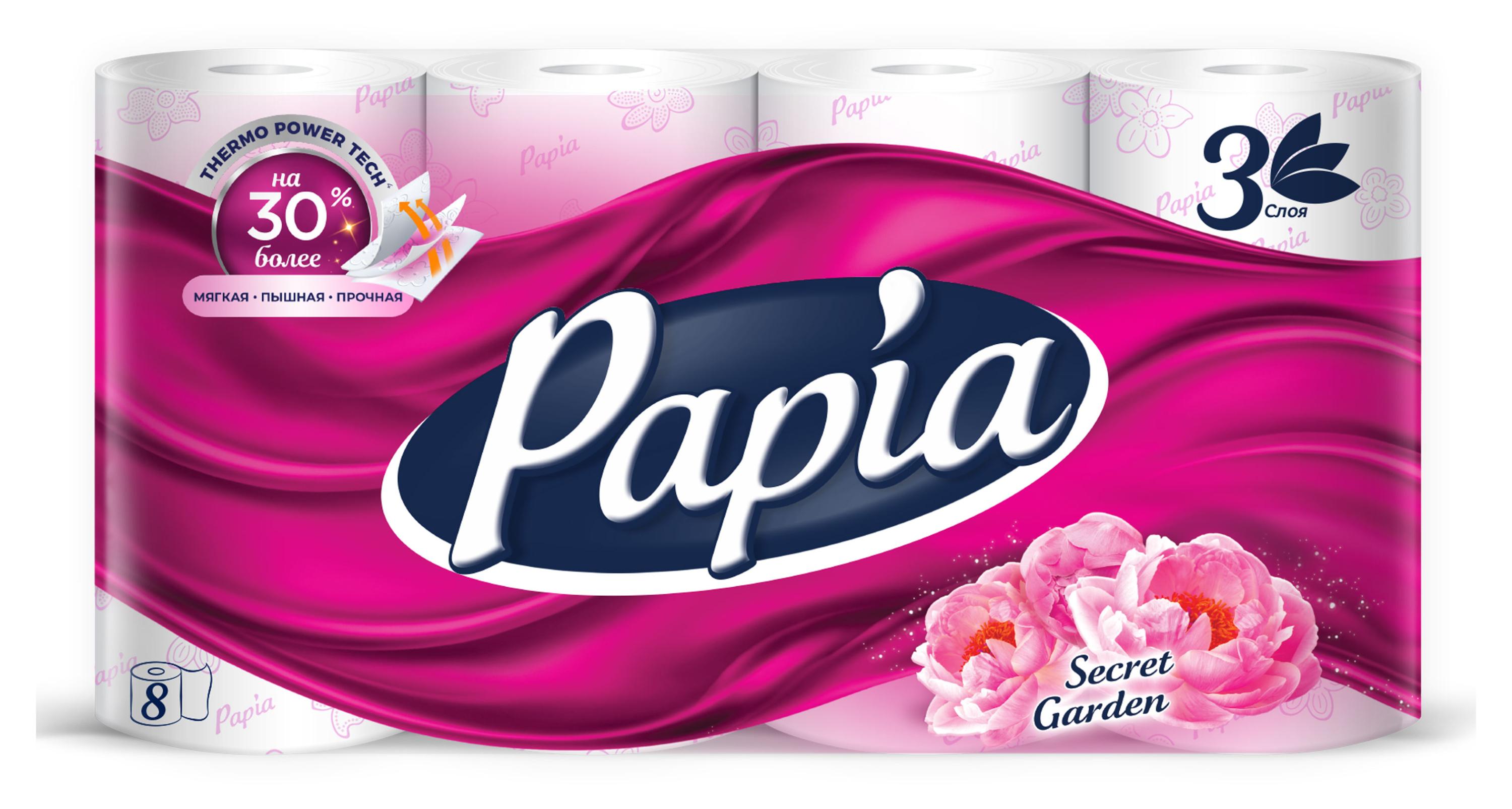 Туалетная бумага Papia Таинственный сад 3 слоя, 8 рулонов