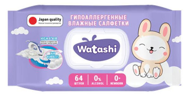Влажные салфетки WATASHI - настоящее спасение мамы в ежедневной гигиене малыша. Гипоаллергенные компоненты гарантируют безопасное ощищение чувствительной кожи ребенка.