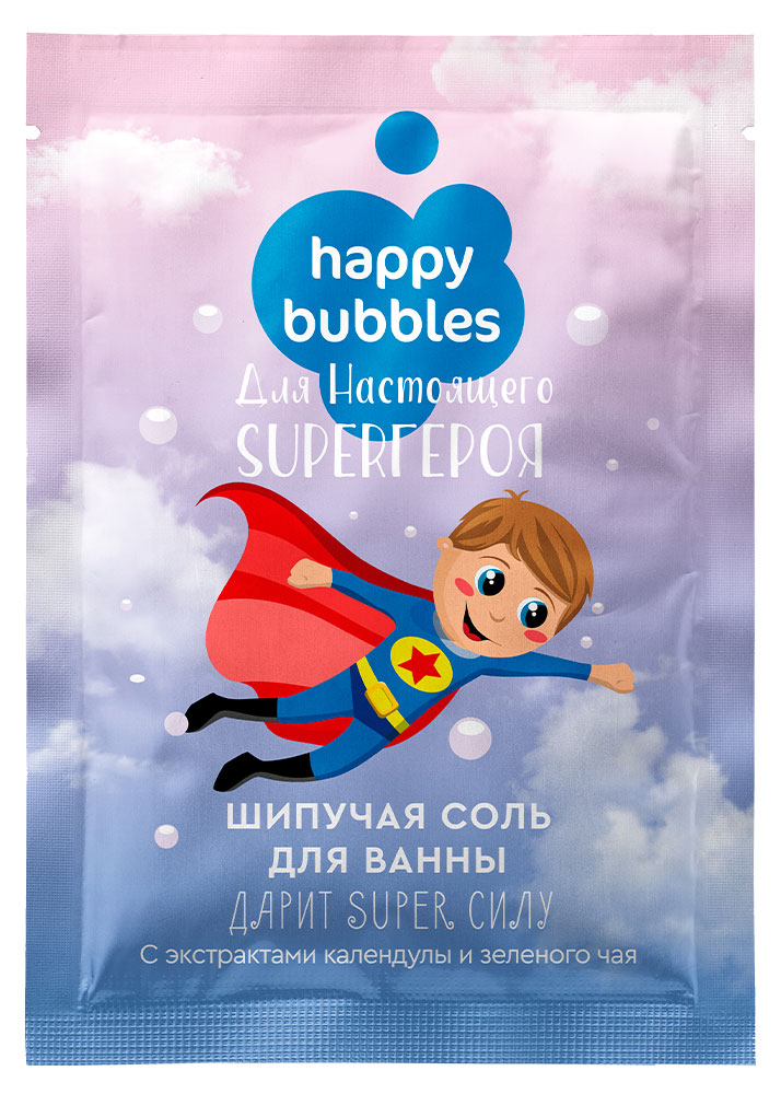 HAPPY BUBBLES|Соль для ванны шипучая HAPPY BUBBLES для настоящего Super героя, 100 г