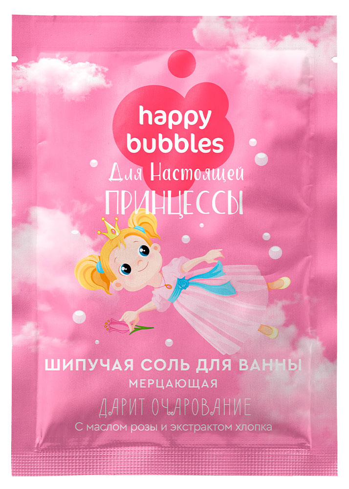 HAPPY BUBBLES|Соль для ванны шипучая HAPPY BUBBLES мерцающая для настоящей принцессы, 100 г