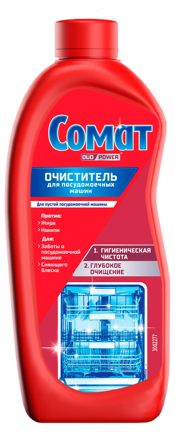 Для достижения наилучшего результата рекомендуется использовать очиститель «Сомат» Intensive не реже 1 раза в 3 месяца. Также, для максимальной чистоты вашей посуды, рекомендуется использовать Таблетки Сомат, которые расщепляют остатки пищи и удаляют сложные загрязнения.