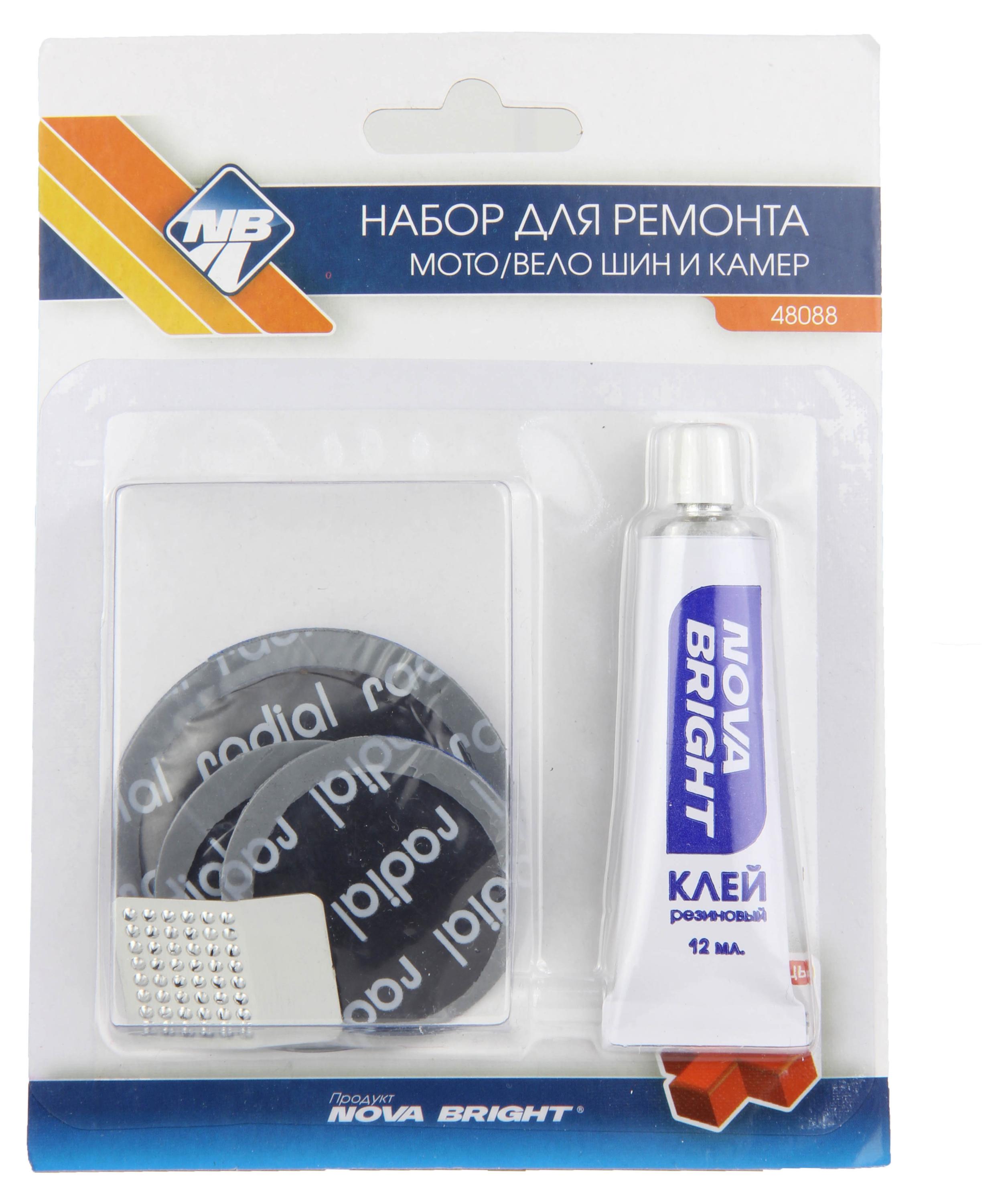Заплаток набор для ремонта камер, шин и др. резиновых изделий "Nova Bright" (1шт х58мм, 2шт х 42мм, клей и рашпиль)
