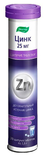Цинк «Эвалар» 25 мг шипучие таблетки, 20 шт