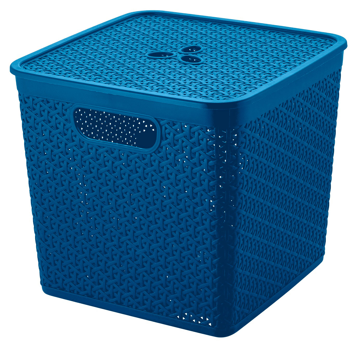 Корзина для хранения Keeplex Rattan со съемной крышкой квадратная 31х31х28см индиго, 21 л