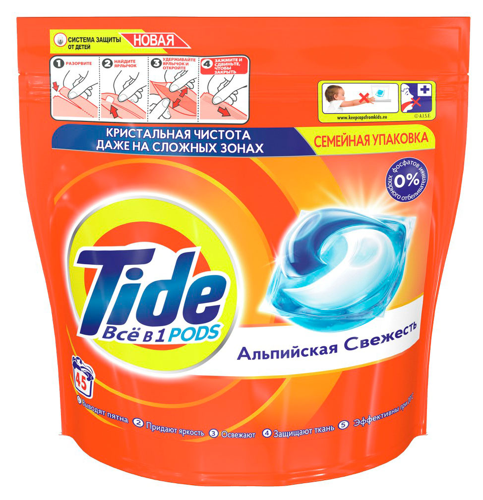 Капсулы для стирки Tide Альпийская свежесть, 45 капсул