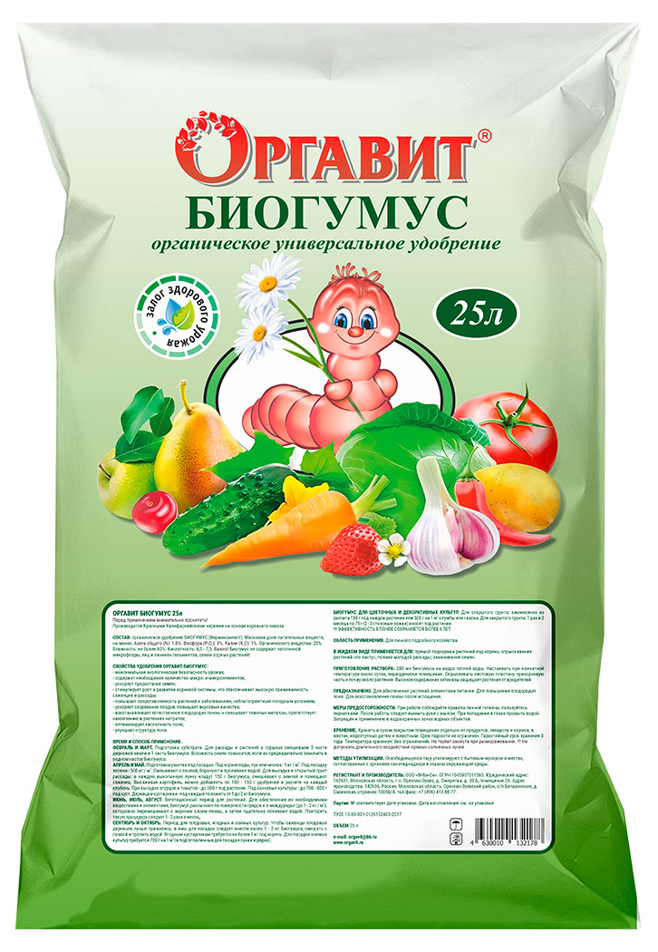Удобрение «Оргавит» Биогумус, 25 л