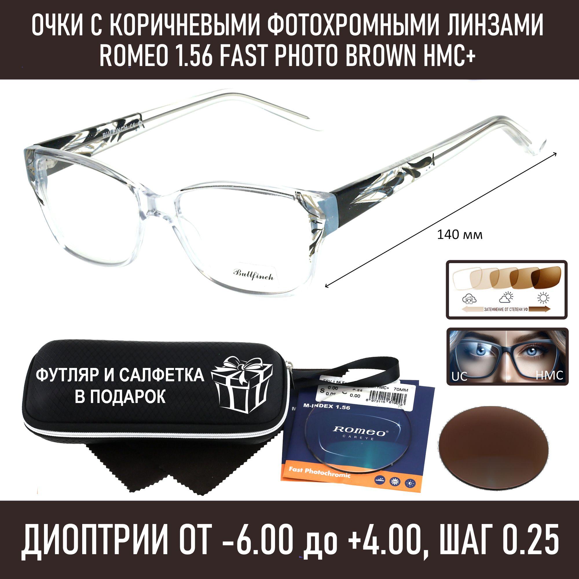 Фотохромные очки с футляром-змейка BULLFINCH мод. 17063 Цвет 8 с линзами ROMEO 1.56 FAST Photocolor BROWN, HMC+ -5.50 РЦ 60-62