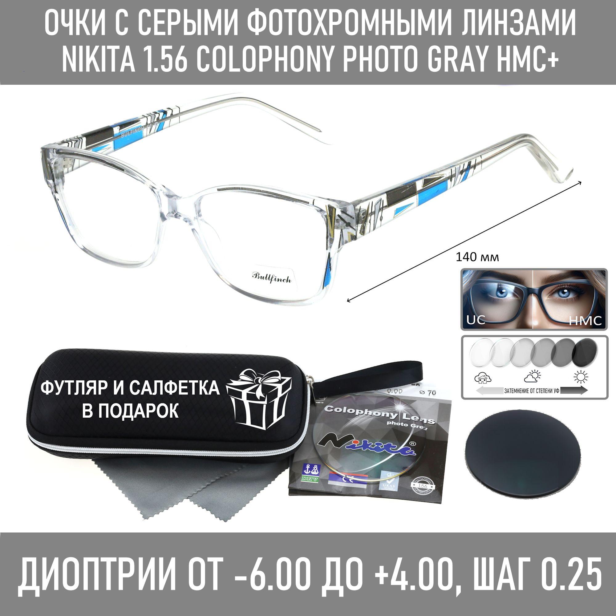 Фотохромные очки с футляром-змейка BULLFINCH мод. 17063 Цвет 1 с линзами NIKITA 1.56 Colophony GRAY, HMC+ -3.00 РЦ 60-62