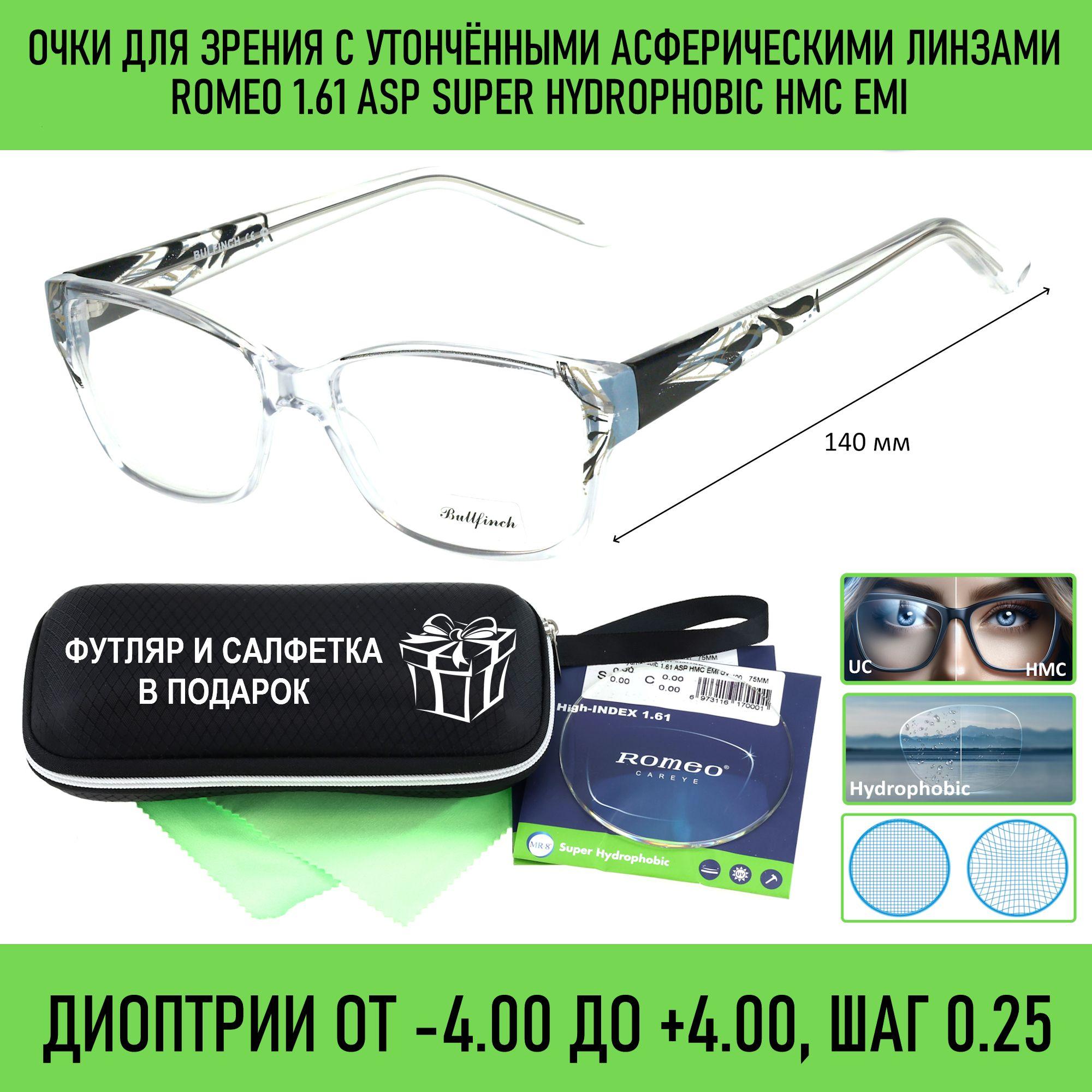Очки с футляром-змейка BULLFINCH мод. 17063 Цвет 8 с асферическими линзами ROMEO 1.61 ASP Super Hydrophobic HMC/EMI -2.00 РЦ 62-64
