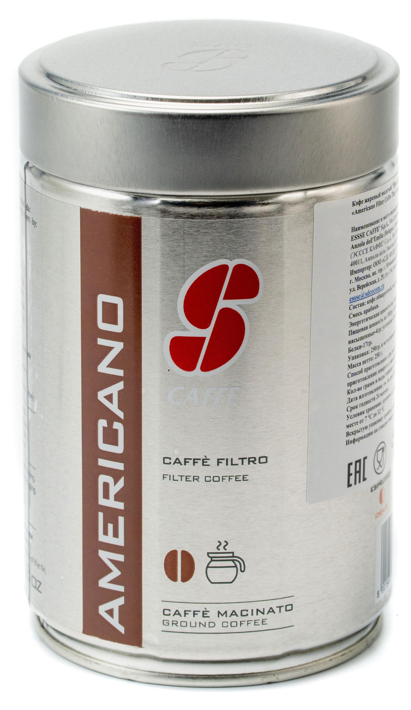 Кофе "Essse Caffe", Americano Filter Coffee Tin / Американо Фильтр, молотый, 250г