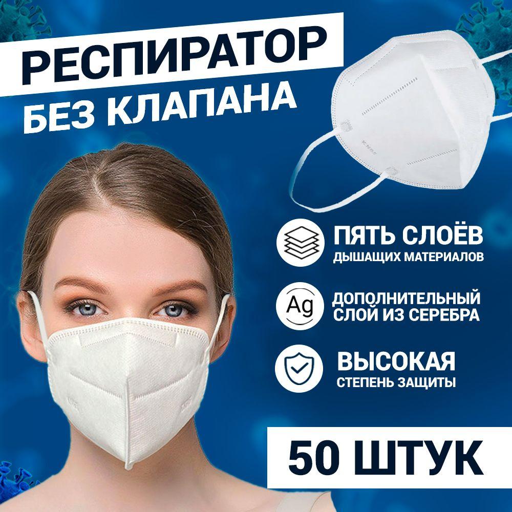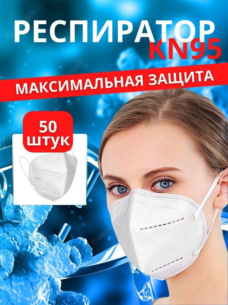 Респиратор универсальный KN95 без клапана 50 шт. белый маска медицинская защита от инфекций