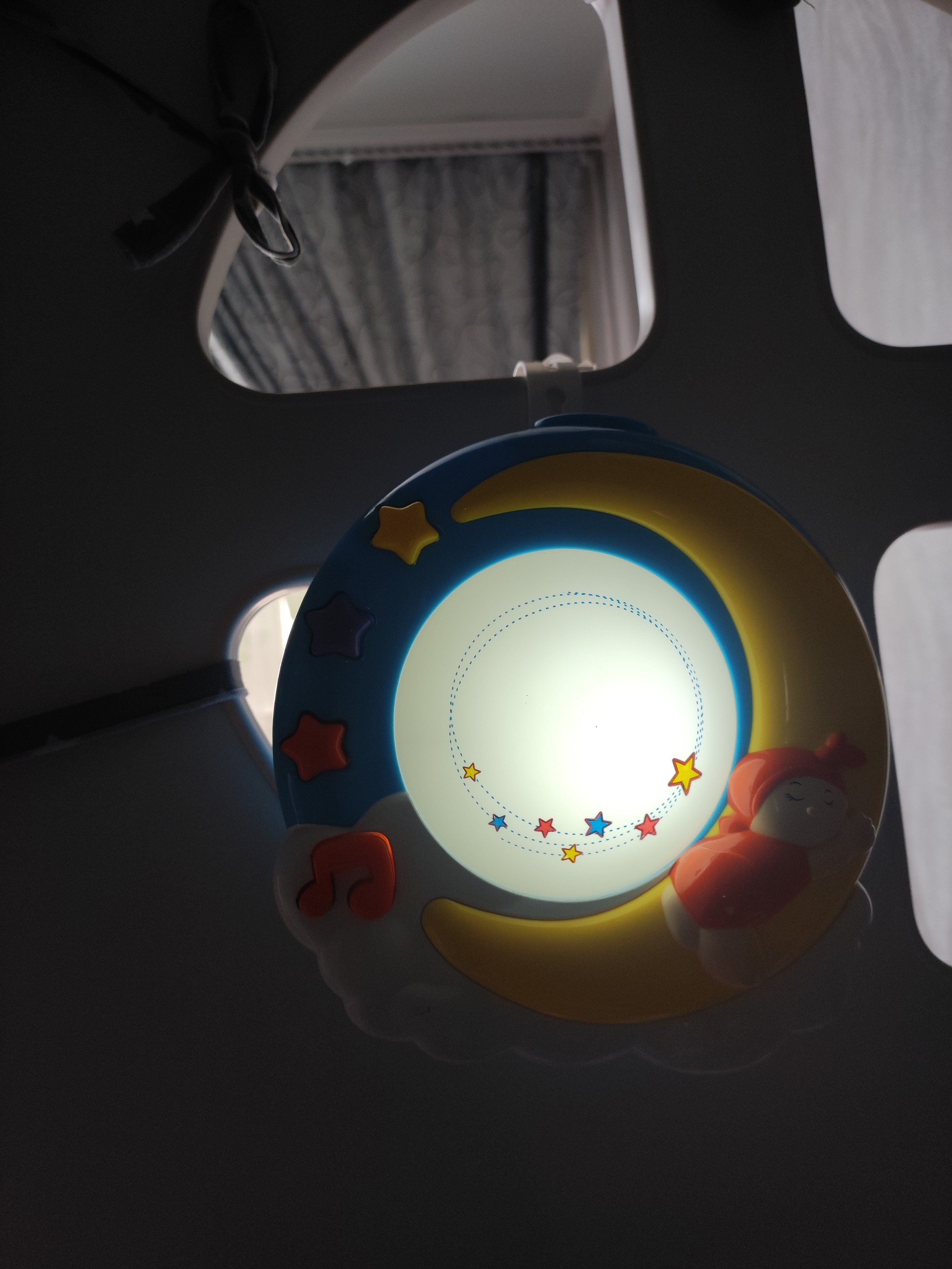 Музыкальный ночник с проектором позволит занять или успокоить малыша: сочетание колыбельных мелодий и звуков природы со световыми эффектами создают уютную атмосферу в детской комнате, а цветная проекция на стену или потолок в виде забавных мишек и ненавязчивое звучание колыбельных мелодий будут способствовать его спокойному сну. Ночник с проектором можно прикрепить на бортик детской кроватки с помощью специального ремешка (в комплекте).