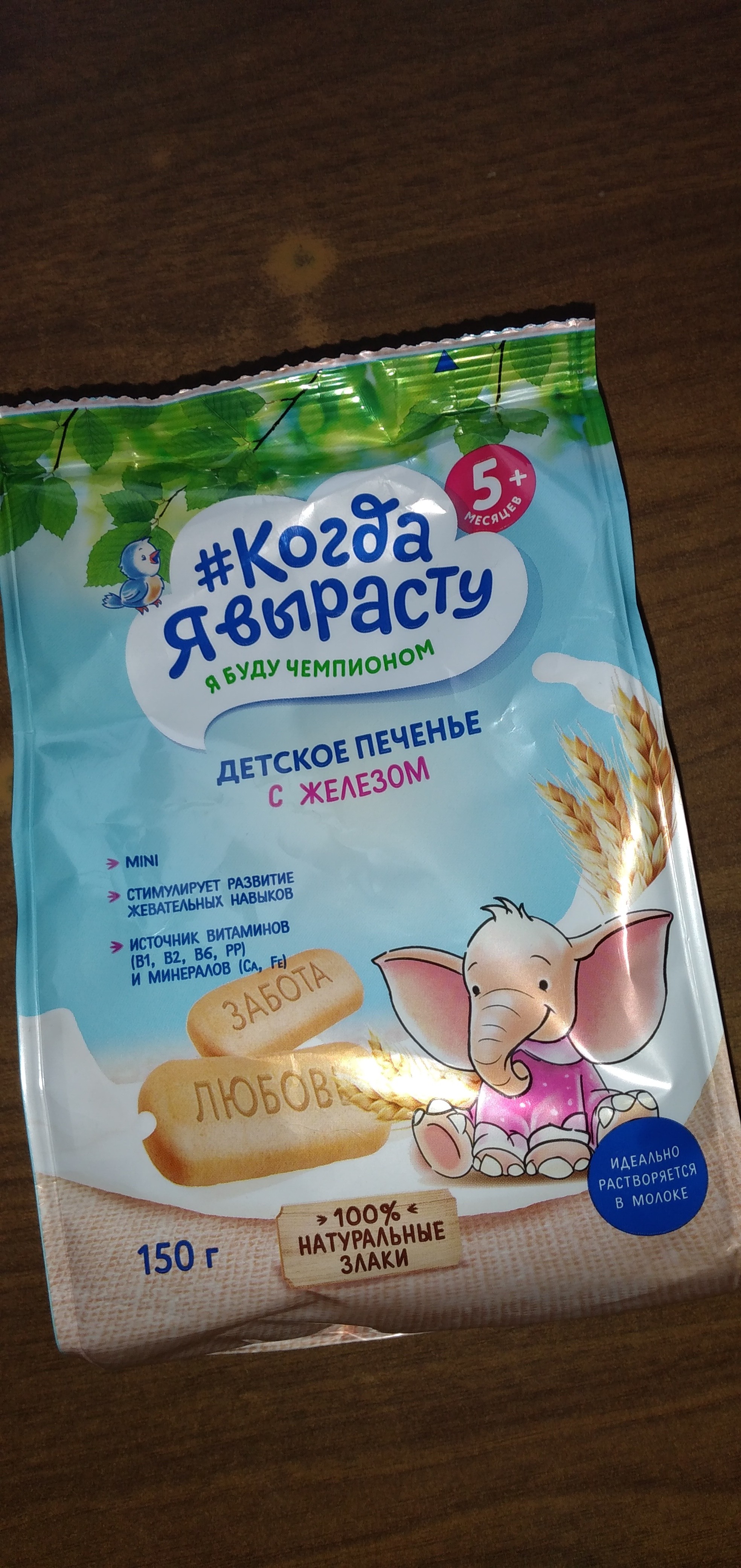 Когда Я вырасту - это первый российский бренд, созданный для заботливых мам, которые выбирают полезные и безопасные продукты для своих малышей! Печенье Когда Я вырасту с железом - это сбалансированный и полезный детский продукт питания или дополнительного прикорма для детей старше 5 месяцев. Разнообразные форматы печенья, начиная от мини-мини, которые так удобно держать маленькими детскими ручками, до стандартного размера с забавными надписями на каждом из них, превращают процесс питания в развлечение!