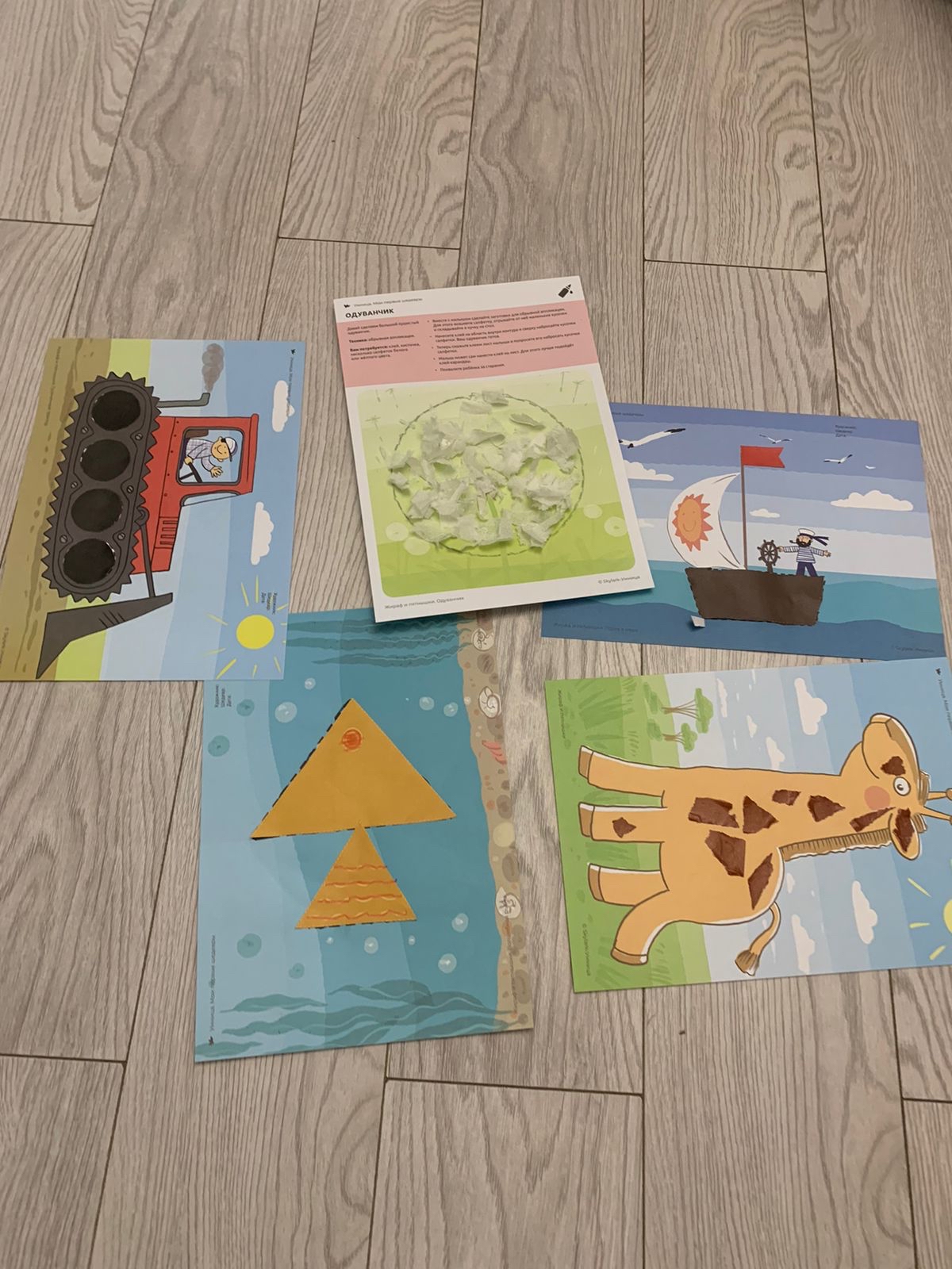 Внутри набора вы найдёте 60 арт-листов с милыми детскими иллюстрациями. Это "заготовки" для творческих заданий. Все они разнообразные, интересные и довольно простые. С их помощью малыш легко и весело освоит самые разные техники: аппликацию, лепку из пластилина, рисование пальчиками, красками, карандашами и др.