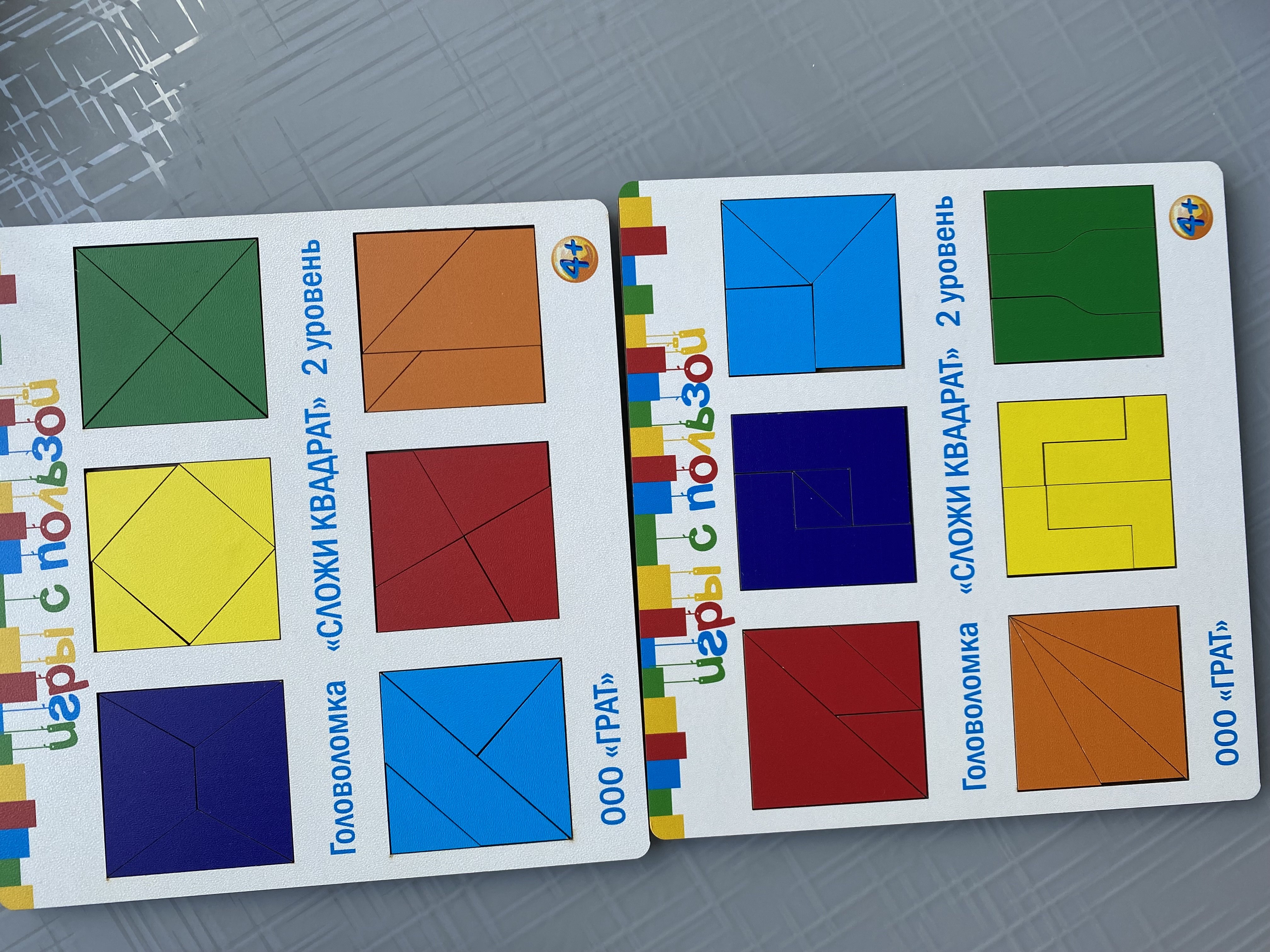 В комплекте:При покупке головоломки ГРАТ Сложи квадрат 2.0 уровень 2 вы получаете 2 фанерных планшета, которые являются основой для сборки квадратов.