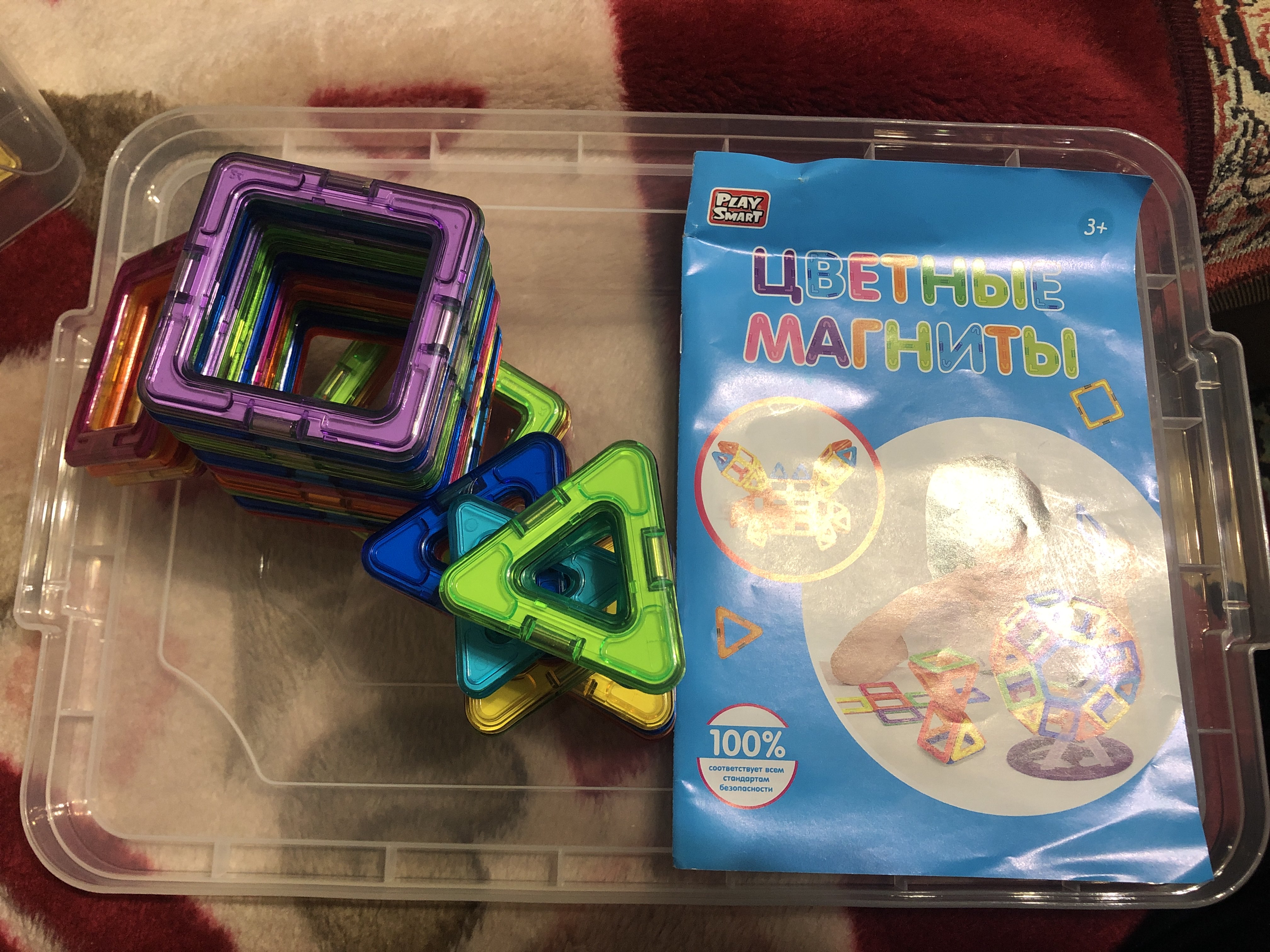 Развитие навыков и способностейМагнитный пластиковый конструктор учит ребенка творчески мыслить, азам моделирования, креативности, развивает мелкую моторику рук, логические способности и внимание. Малыш приобретает навыки счета, изучает геометрические фигуры - треугольники и прямоугольники разного цвета. В процессе игры развивается усидчивость и умение решать головоломки.