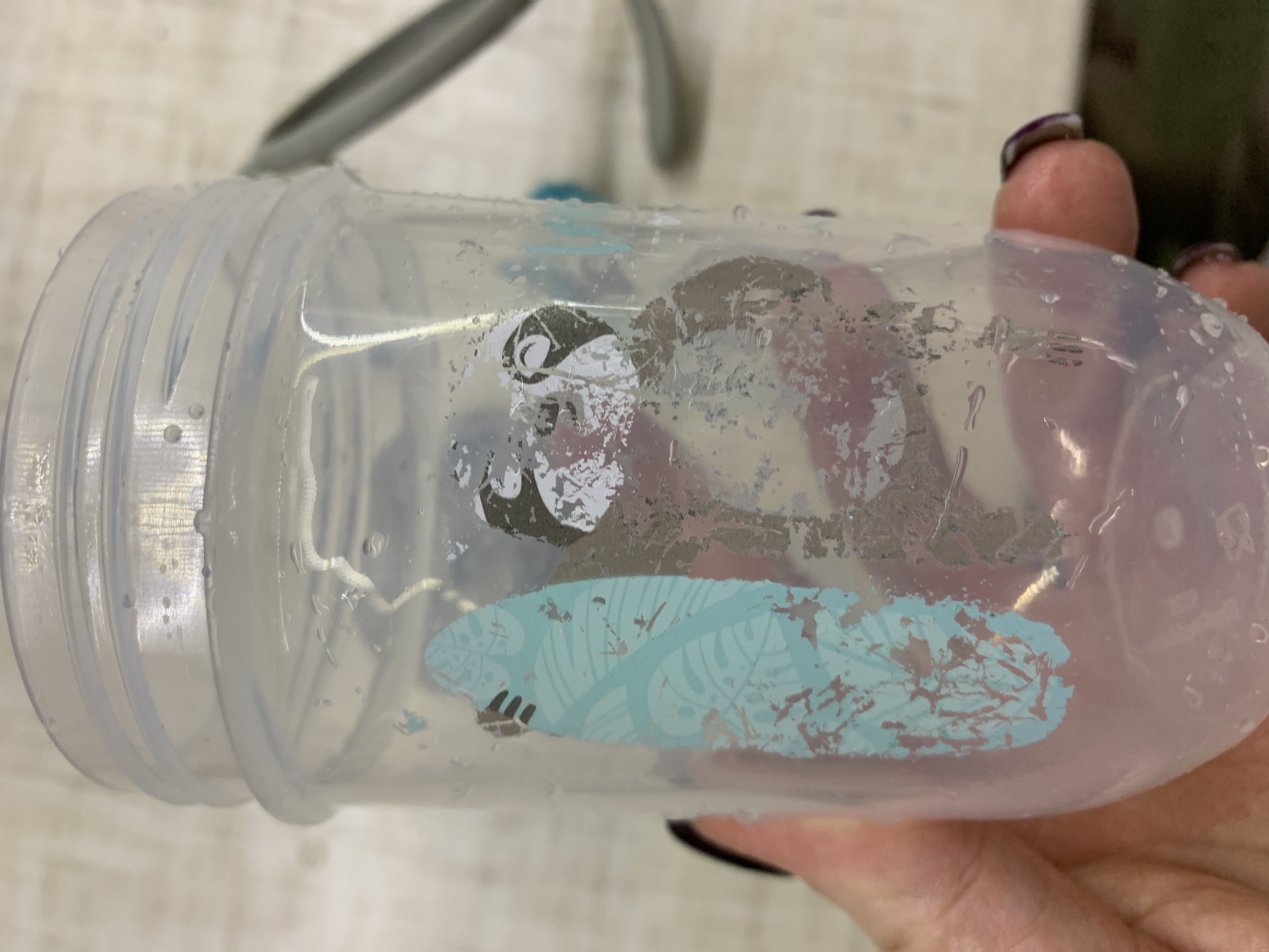 Износ рисунка: Со временем рисунок на поверхности поильника может стираться после многократной мойки, что может ослабить его привлекательность для детей.