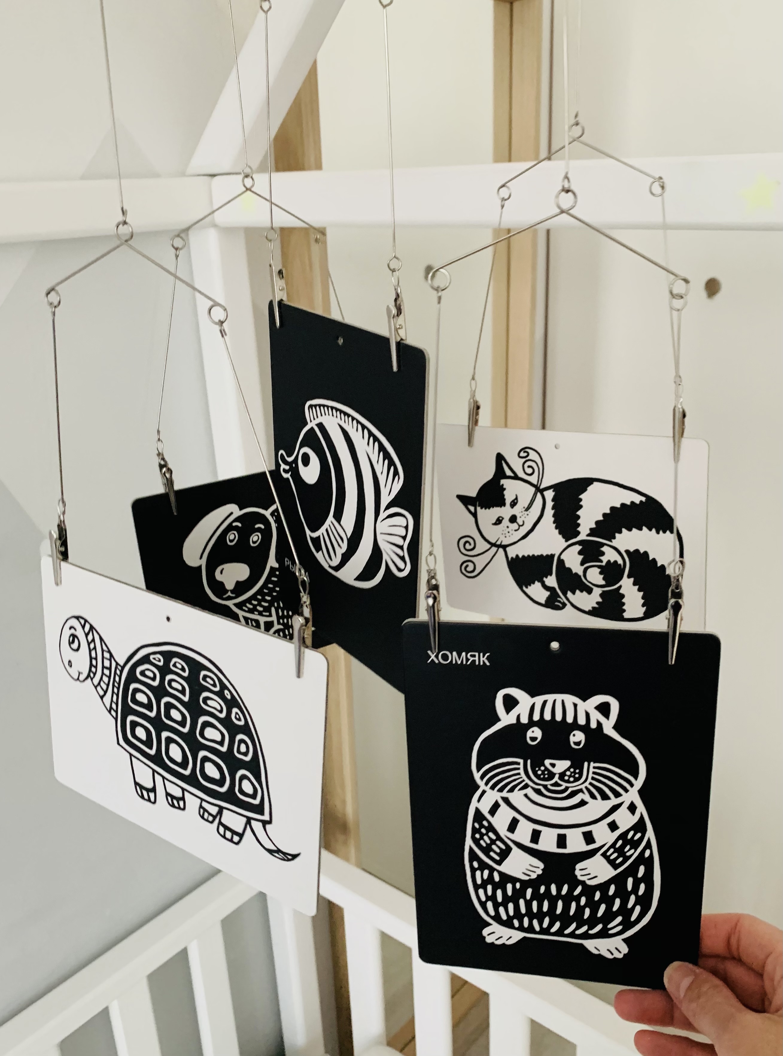 Вам поможет развивающий набор черно-белых карточек VeraKit, созданный на основе методик раннего развития Глена Домана, системы Монтессори, Сирс, Брюэр и ряда исследований нервно-психического развития детей первого года жизни.