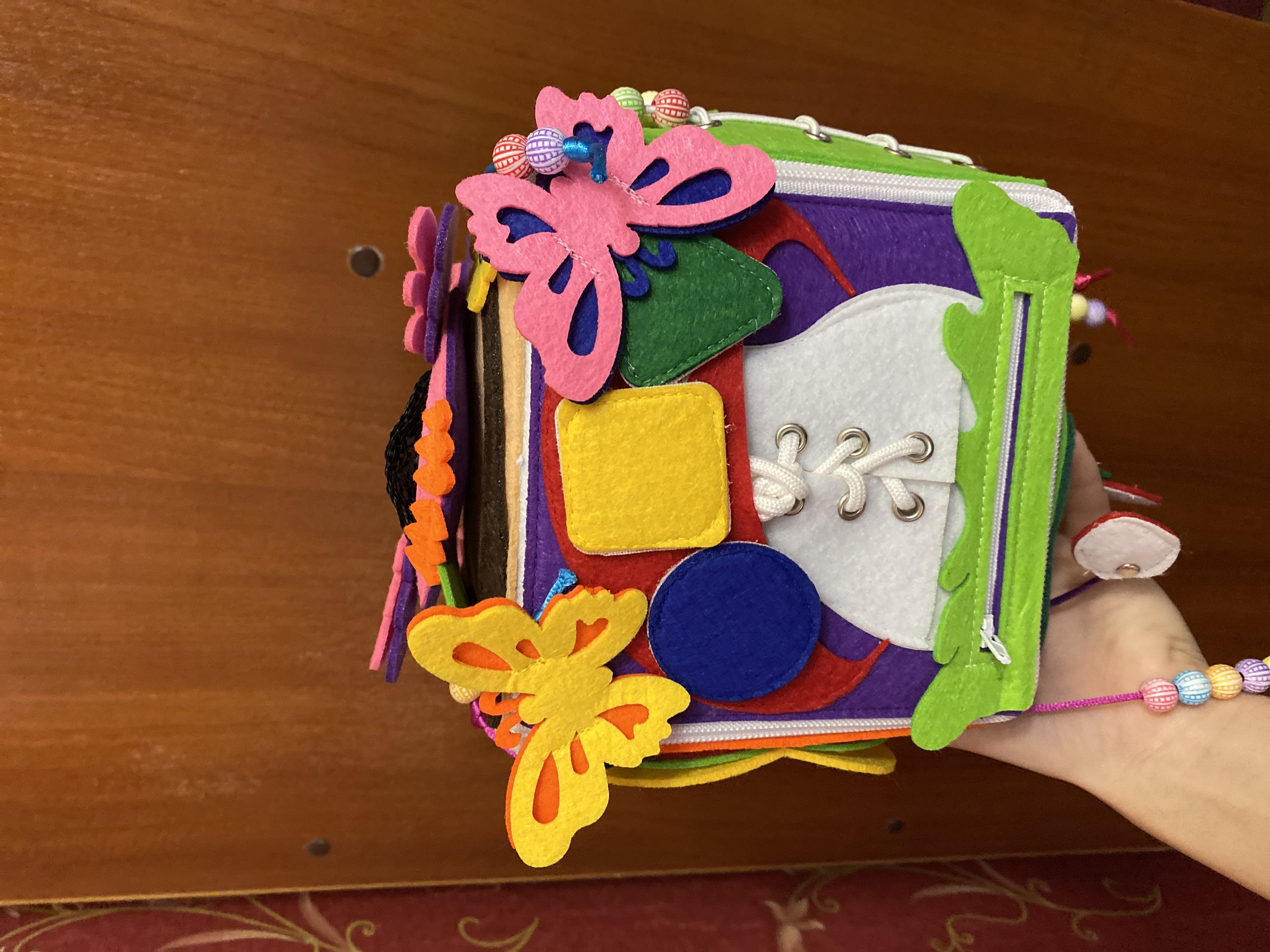 Для каждого возраста есть свои занятия, а при желании родители смогут разнообразить игры, давая разные задания. Бизибордик безопасен для малыша – его можно лизать и грызть, а надежные крепления и крепкие швы делают игрушку долговечной.