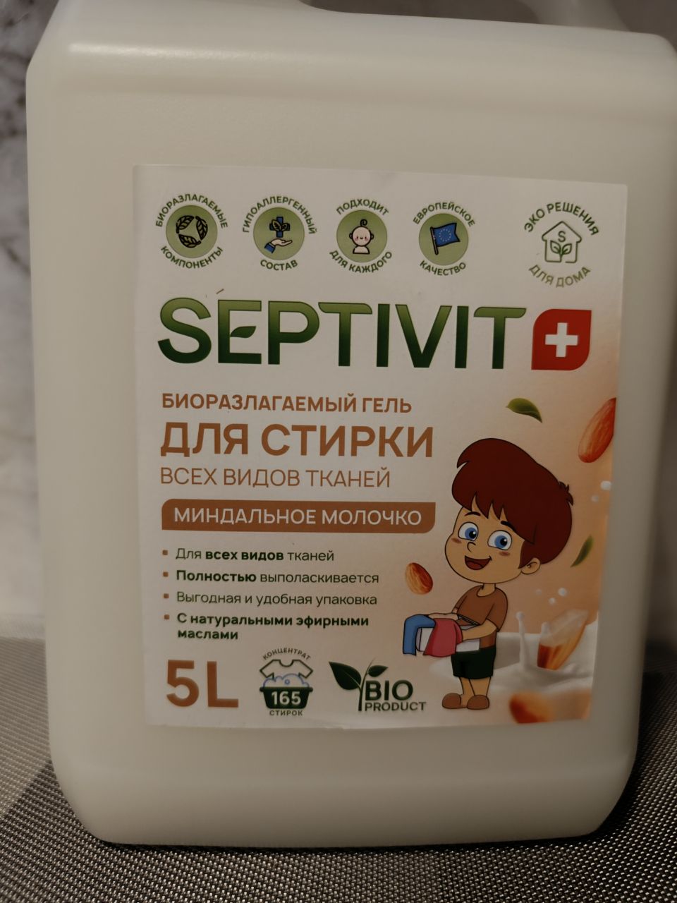 - Гель для стирки SEPTIVIT Premium - удобная и эффективная формула для стирки белья. Жидкий порошок для стирки обеспечивает бережный уход за вещами, не оставляя разводов и сохраняя первоначальный вид ткани. Экологичный, гипоаллергенный состав подходит для людей с чувствительной кожей, ведь средство полностью вымывается из волокон ткани, а на одежде не остается запаха отдушки. Гель для стирки белья Септивит можно использовать для ручной и машинной стирки. Продукция бренда SEPTIVIT Premium соответствует стандартам ISO 9001:2015, ISO 14001:2015. Septivit Premium - ЭКО-решения для Вашего дома!