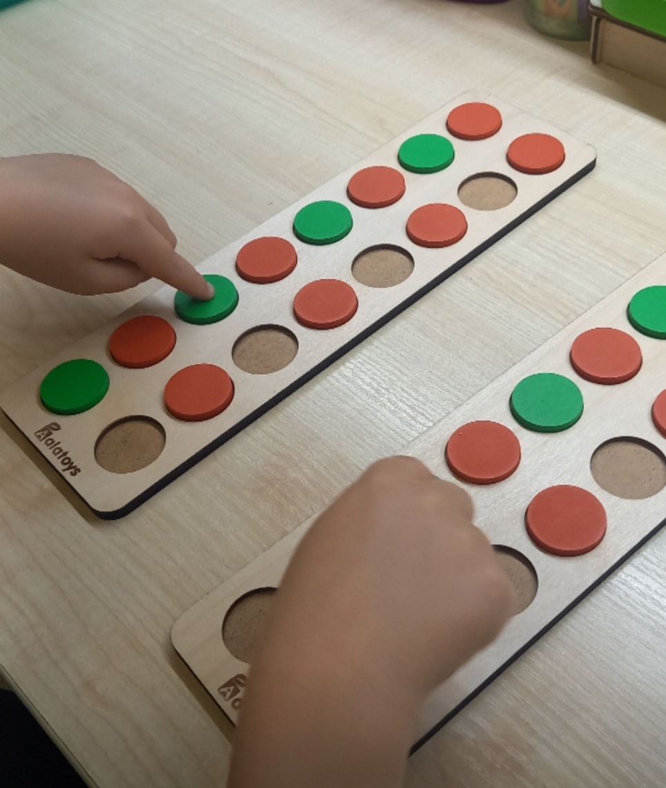 - Ребенок может перебирать указательные и средние пальчики по выемкам на досочке и проговаривать скороговорки, стишки или считалки.