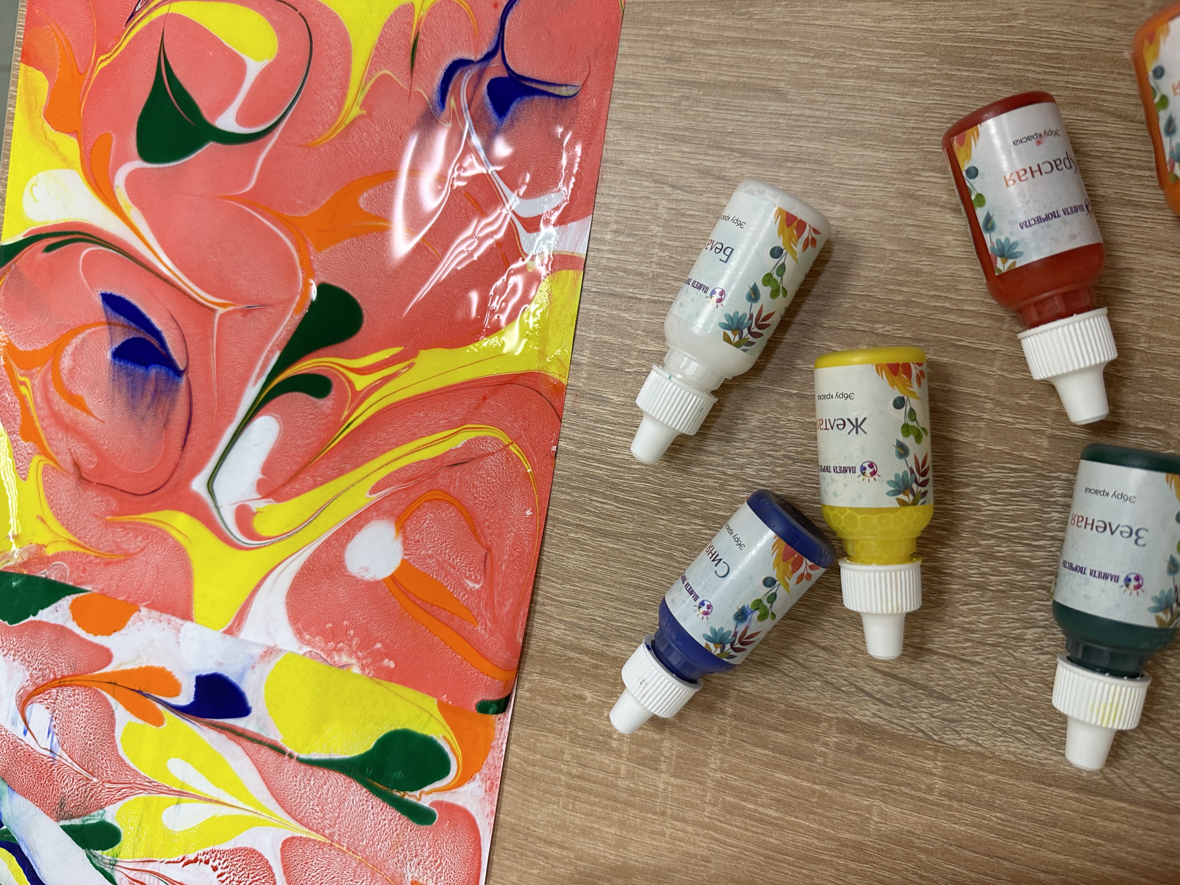 Уникальные рисунки каждый разС помощью набора для рисования на воде Планета творчества Эбру вы сможете создавать красивые и уникальные рисунки каждый раз. Просто нанесите несколько капель краски на поверхность воды, используя загуститель для создания интересных эффектов. Затем поместите бумагу на поверхность воды, чтобы рисунок перенесся на нее. Получившийся рисунок будет уникальным и неповторимым, ведь каждый раз краски распределяются по-разному на поверхности воды.