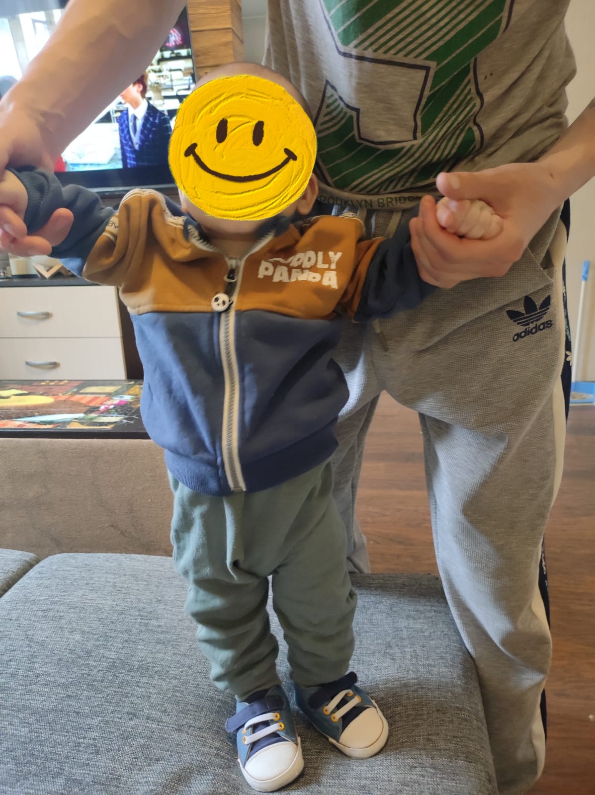 Текстильные пинетки для мальчика Tombi в виде кед синего цвета.