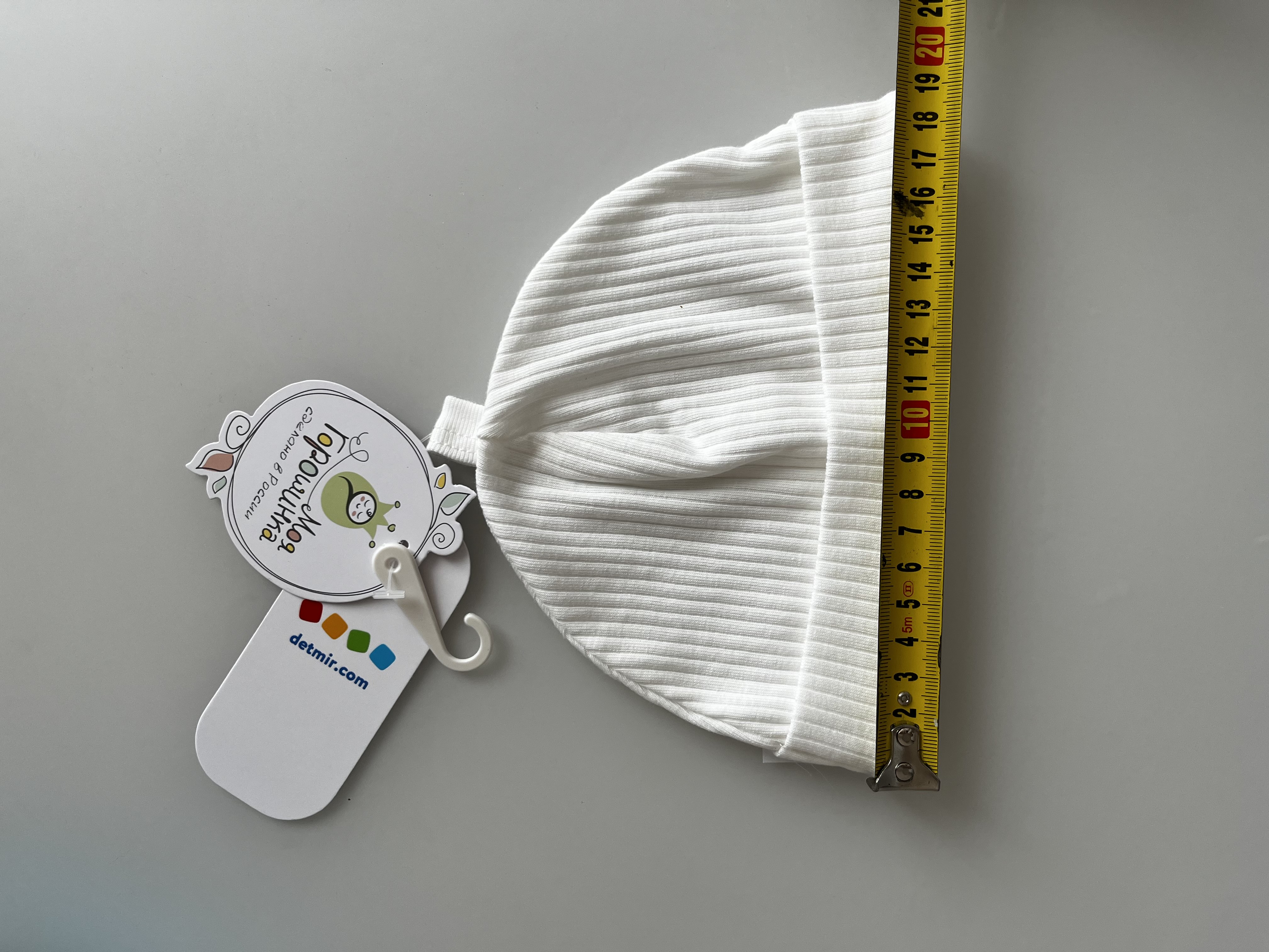 Однотонная шапочка "Моя Горошинка" молочного цвета в рубчик.