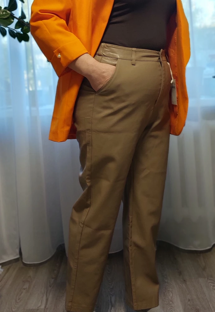 Размерная таблица расположена на 3ем фото. Брюки женские больших размеров имеют высокую посадку, для вашего комфорта plus size выполнены из эластичной экокожи с резинкой сзади, поэтому хорошо сядут на любую фигуру. Кожаные штаны актуальны осенью, весной и теплой зимой. Благодаря матовой экокоже без начеса офисные, имеют посадку плюс сайз прямого кроя, хорошо скрывают недостатки и визуально стройнят, классические идеально подойдут для офиса. Добавляйте бренд Eleine в любимые - так вы всегда будете видеть все наши новинки и акции.
