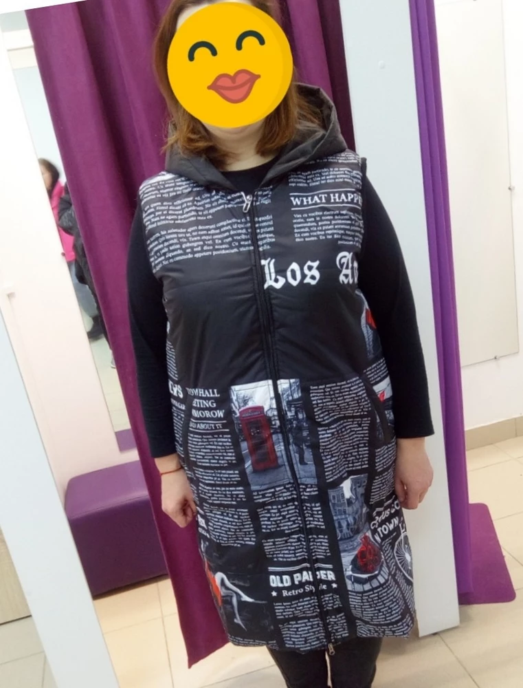 Представляем вашему вниманию женский, стёганый, болоньевый жилет с принтом.