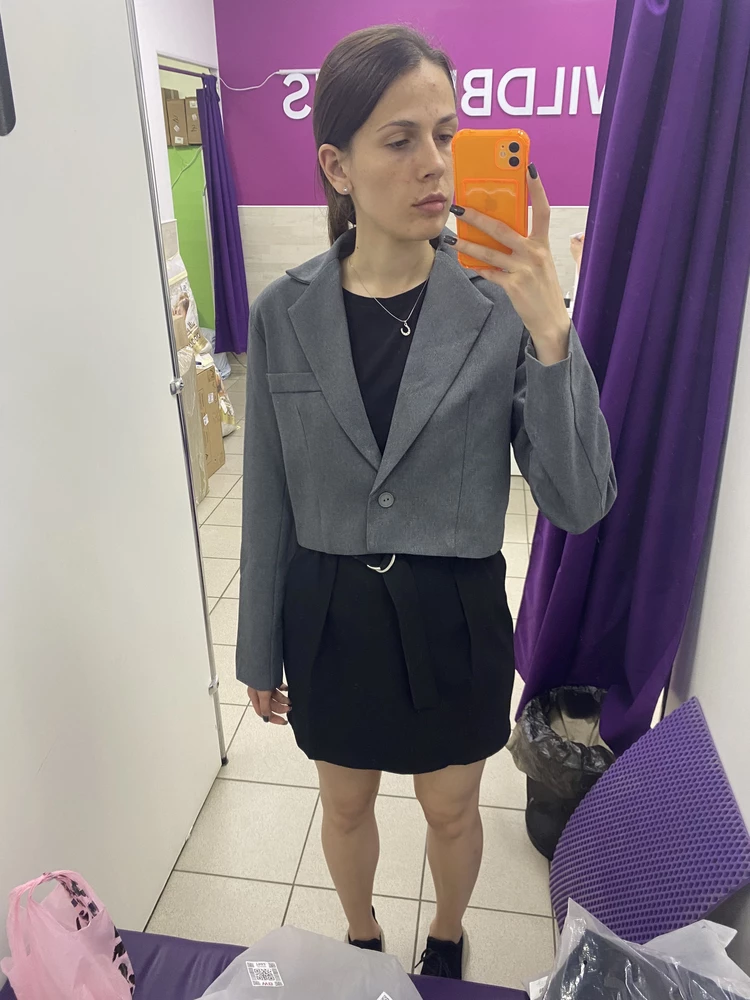 Пользователи отмечают, что пиджак укороченный оверсайз кроп идеально садится по фигуре, обеспечивая комфортное и свободное ношение. Даже при различных ростовых параметрах (например, 165 см или 182 см) пиджак подходит идеально.