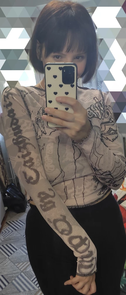 Красотки, универсальный вечерний лонгслив должен быть в гардеробе у любой модницы. Топик с принтом хорош как на вечеринку, так и на пробежку, и даже в офис. Прозрачный лонг с длинным рукавом выполнен из эластичной трикотажной сетки, он хорошо тянется, но при этом не теряет свою форму и не деформируется, он отлично садится по фигуре за счет свободного кроя и материала. Желаем вам приятных покупок!