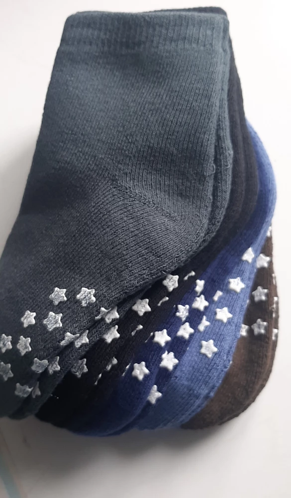 Антискользящие звездочки: Носки оснащены антискользящими звездочками на подошве, которые предотвращают скольжение и помогают вашему малышу чувствовать себя уверенно при движении.