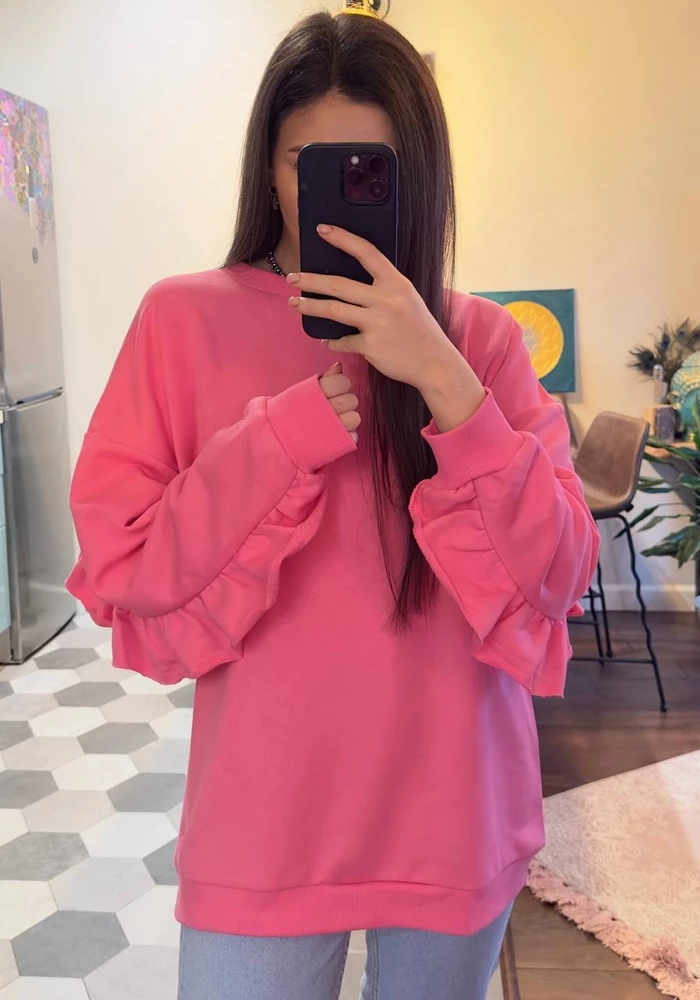 Стильный Дизайн с ВоланамиСвитшот привлекает внимание своим стильным дизайном с воланами, который делает его необычным и модным. Этот элемент придает образу индивидуальности и элегантности.