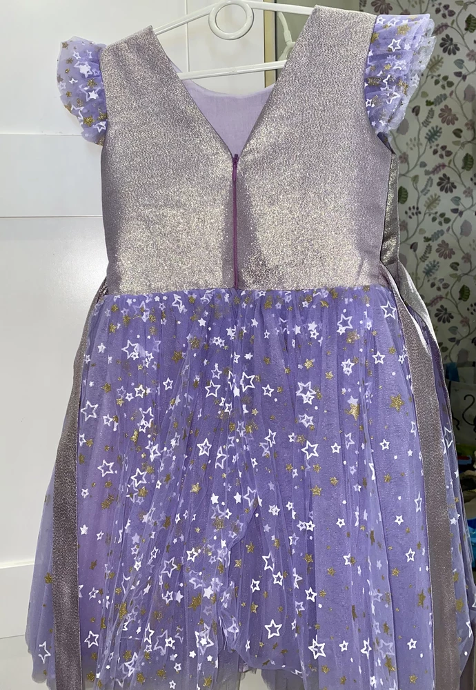 Это шикарное платье станет изюминкой в образе вашей маленькой принцессы. Изготовлено из нежного, высококачественного 100% хлопка. Оно обещает не только стильный и роскошный вид, но и максимальный комфорт в любое время года. Пышная, фатиновая юбка со сборками смотрится безупречно на юной леди. И добавляет стилю летящей, воздушной легкости. Короткие рукава - крылышки и бант на спине придают модели неповторимый шарм, мягко ложась по фигуре. А блестящий оттенок с яркими звездочками делает вашу девочку настоящей царевной на любом празднике. Красивое исполнение и необычный дизайн платья - идеальны для фотосессии и утренников в садике в осенний, весенний и зимний период. Оно актуально для летнего выпускного в детском саду. Подойдет на возраст от 4 до 7 - 8 лет. Модный фасон уместен на выход в театр в сезон весна - лето. И уютен на закрытых праздничных мероприятиях осень - зима. Нарядное и легкое платье с поясом - это лучший вариант для особого торжества, такого как день рождения! Милый золотой верх этого наряда подчеркнет индивидуальность вашего ребенка. Пусть ваша модница ощутит себя уверенно будучи в центре внимания. И почувствует себя прекрасной сказочной феей!