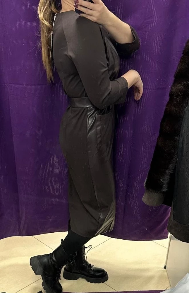 Трендовое кожаное платье с рукавами и спинкой из плотного трикотажа. Оно идеально подойдет как нарядное новогоднее платье, так и офисное платье. Это качественное и строгое платье подойдет для любого вечернего мероприятия или корпоратива. В нем вы будете чувствовать себя уверенно и стильно. Классический крой и длина миди делают его идеальным для офиса или зимних прогулок. Это отличное решение для женщины, которая заботится о своей внешности и хочет всегда выглядеть на все сто процентов. Комбинация красивого дизайна и высокого качества делает это платье очень модным и стильным. Изготовленное из кожи, оно элегантно облегает фигуру и подчеркивает вашу женственность. Сочетание качественного трикотажа и экокожи, современный дизайна сделает вас звездой любого мероприятия. Оно также будет идеальным вариантом для работы в офисе или похода в ресторан. Размеры платья представлены в широком ассортименте, чтобы каждая девушка могла выбрать идеальный вариант для себя.