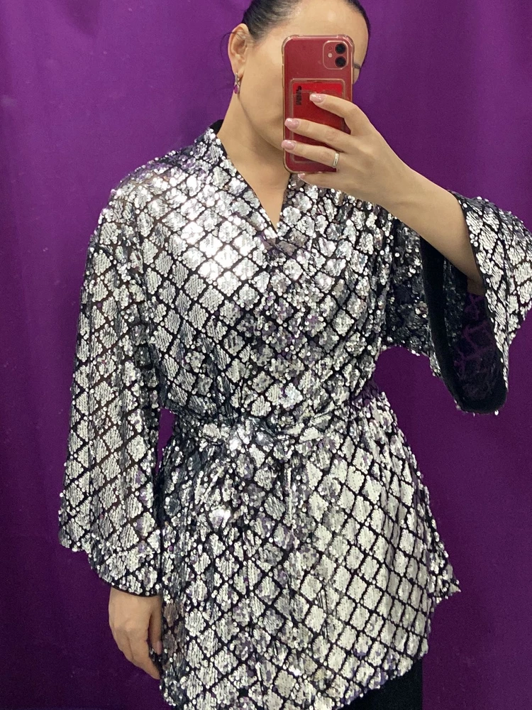 FRANCESCA LUCINI|Жакет-кимоно с пайетками,вечерний,новогодний,блестящий