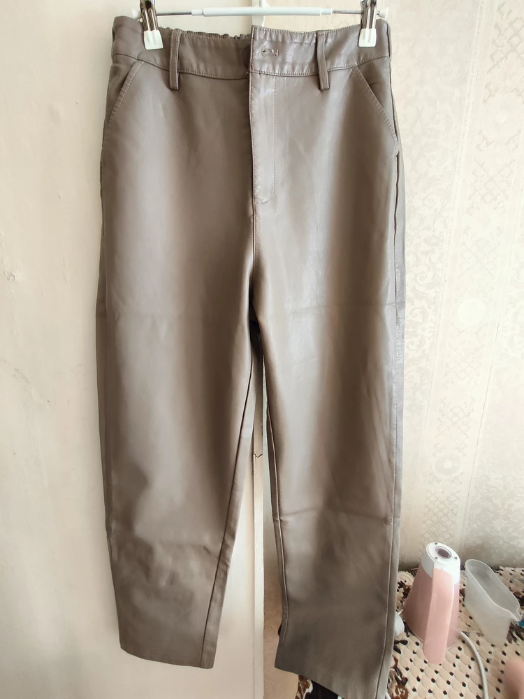 Укороченные светлые брюки больших размеров отлично сядут на любую фигуру. Штаны бананы кожаные имеют среднюю посадку и резинку сзади, подчеркнут достоинства вашей фигуры и скроют недостатки. Эко кожа офисные плюс сайз отличный вариант для весны и осени, а также теплой зимы. Внешний материал женских прямого кроя plus size - экокожа, которая не впитывает влагу.