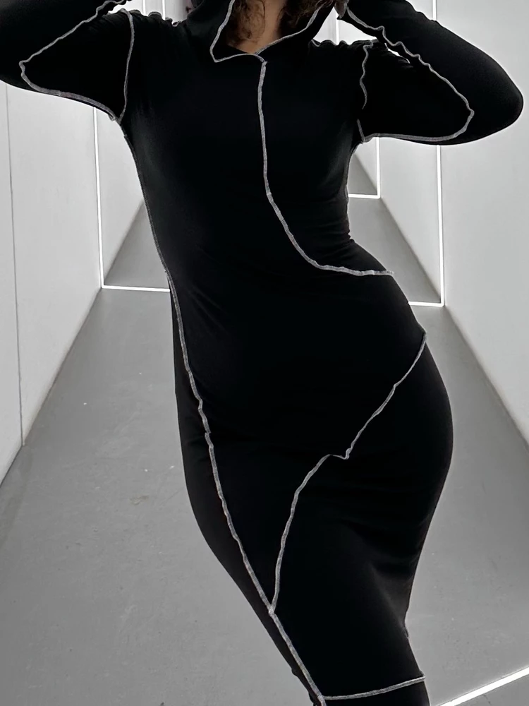 ElizaVi|Платье повседневное с длинным рукавом швы наружу