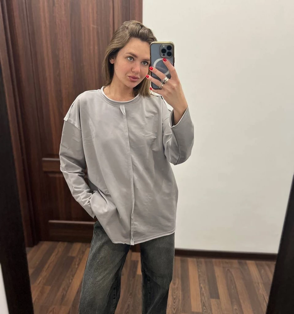 Универсальный стильСвободный крой и удлиненный силуэт лонгслива прекрасно подойдут для различных типов фигур, включая беременных женщин и людей плюс сайз. Независимо от параметров, этот лонгслив доступен в больших размерах, а также в сером и белом цвете, чтобы каждая женщина могла наслаждаться своим стильным образом.
