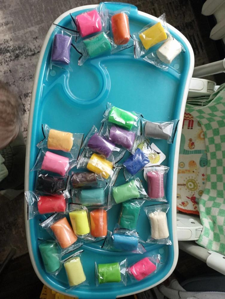 - 24 бруска теста по 30 грамм каждый, включающих 6 цветов с блестками