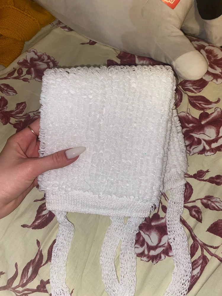 Минусы: Проблемы с исполнением:Некоторые пользователи жалуются на торчание ниток и неаккуратное исполнение мочалки. Это может повлиять на ее долговечность и эстетическое восприятие.