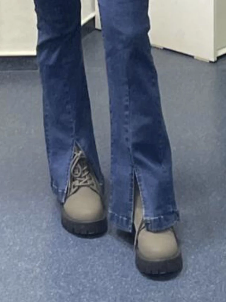 Джинсы клеш от колена идеально подойдут как для невысоких девушек на прохладные осенние и зимние дни, так и для женщин и девушек низкого роста. Их можно легко подогнать под нужный рост, подшив или обрезав. Базовые темные джинсы с обработанным краем подойдут как для офиса, так и для повседневной носки. Качество и долговечность