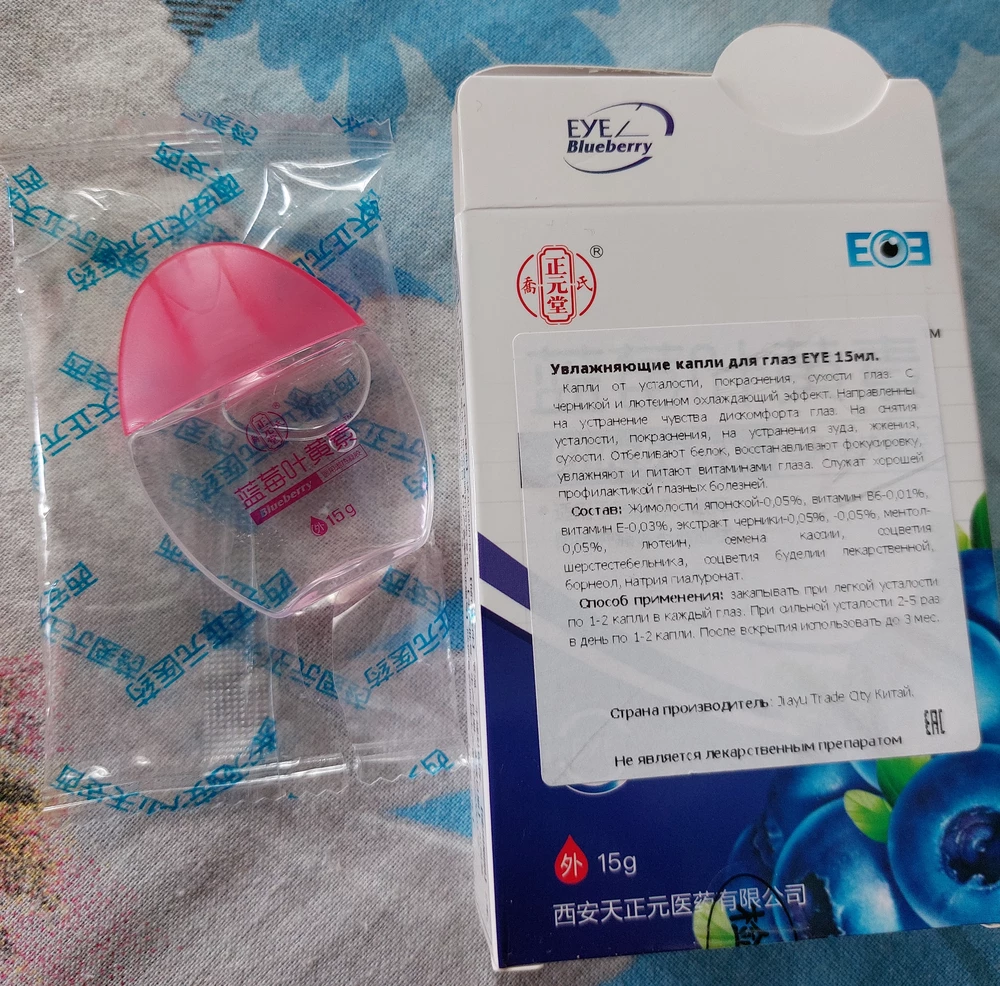 Для тех, кто ценит качество по разумной цене. Мягкие увлажняющие капли для глаз EYE. Избавят от усталости, покраснения, сухости. Отбелят белок, придадут ясность зрению. Направленны на устранение чувства дискомфорта глаз. На снятие зуда, жжения, чувства песка в глазах. Восстанавливают фокусировку, питают витаминами глаза. Подходят людям офисных профессий, работающих за компьютером, работающих при не естественном освещении. Водителям, долгое время находящихся за рулем (особенно в ночное время). Подойдут и при посещении спортивных залов, бассейнов. Работников цехов, мастерских. Пожилым людям. Капли содержат богатый витаминный комплекс, чернику и лютеин. Капли для глаз включают в себя все необходимые компоненты для поддержания здоровья зрительных органов. Состав: Экстракт черники, Лютеин, витаминB6, витаминE, жимолость японская, соцветия хризантемы индийской, жемчужная пудра, семена кассии, соцветия шерстестебельника, соцветия буддлеи лекарственной, борнеол, ментол, натрия гиалуронат, витамин В6. Способ применения: закапывать при легкой усталости — по одной капле в каждый глаз. При сильной усталости — 2-5 раз в день по 1-2 капли. Не является лекарственным препаратом.