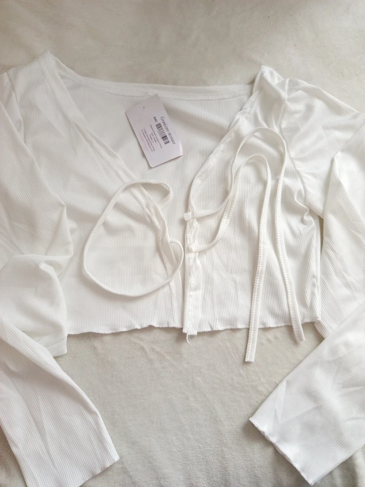 Представляем вашему вниманию ультрамодную кофту на завязках в стиле Y2K, которая станет прекрасным дополнением к гардеробу любого подростка. Этот джемпер выполнен в нежном белом цвете, который отлично сочетается с различными элементами одежды и аксессуарами.