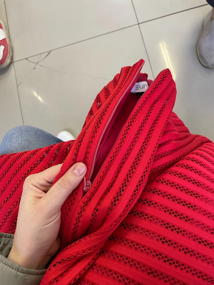 Юбка женская полусолнце длины миди (средней длины), выполнена из приятного, текстурного и мягкого неопрена, который при достаточной плотности - отлично держит форму и подойдёт для любого типа фигуры. Представлена в двух вариантах: с перфорацией - плотная полоска/полоска сетки, и без перфорации - однородная ткань в мелкую полоску.